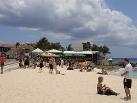 Das müsste dann der Mullet Beach sein. Da waren wir auch schon. 15 Minuten zu Fuß vom Maho Beach entfernt. Super toller Strand mit schöner Beach Bar.