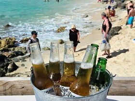 Das müsste dann der Mullet Beach sein. Da waren wir auch schon. 15 Minuten zu Fuß vom Maho Beach entfernt. Super toller Strand mit schöner Beach Bar.