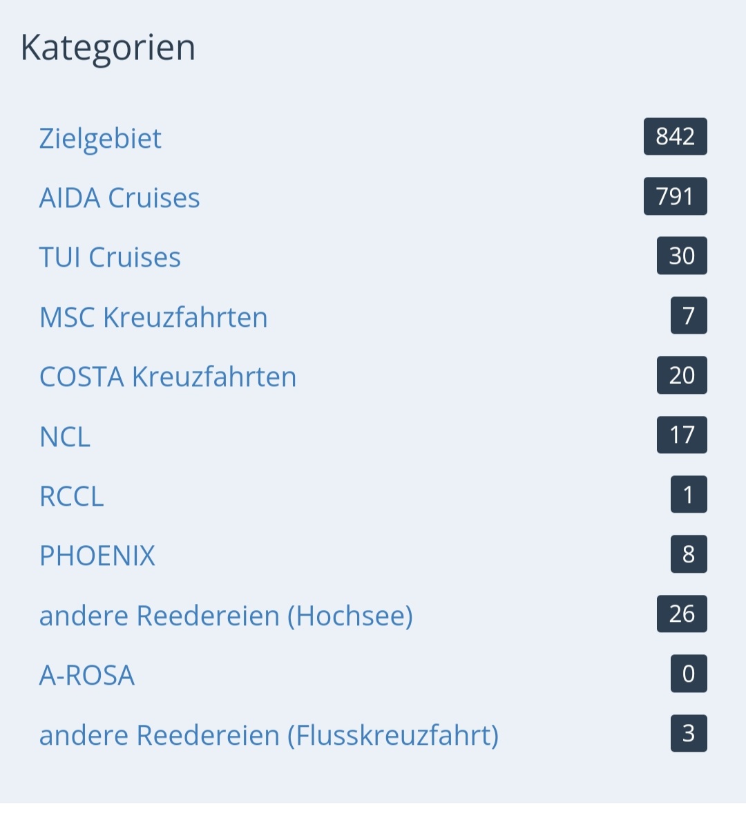 Schau mal 》》》 hier 《《《 da findest du viele Reiseberichte. Diese sind nach Reederei oder Zielgebiet sortiert