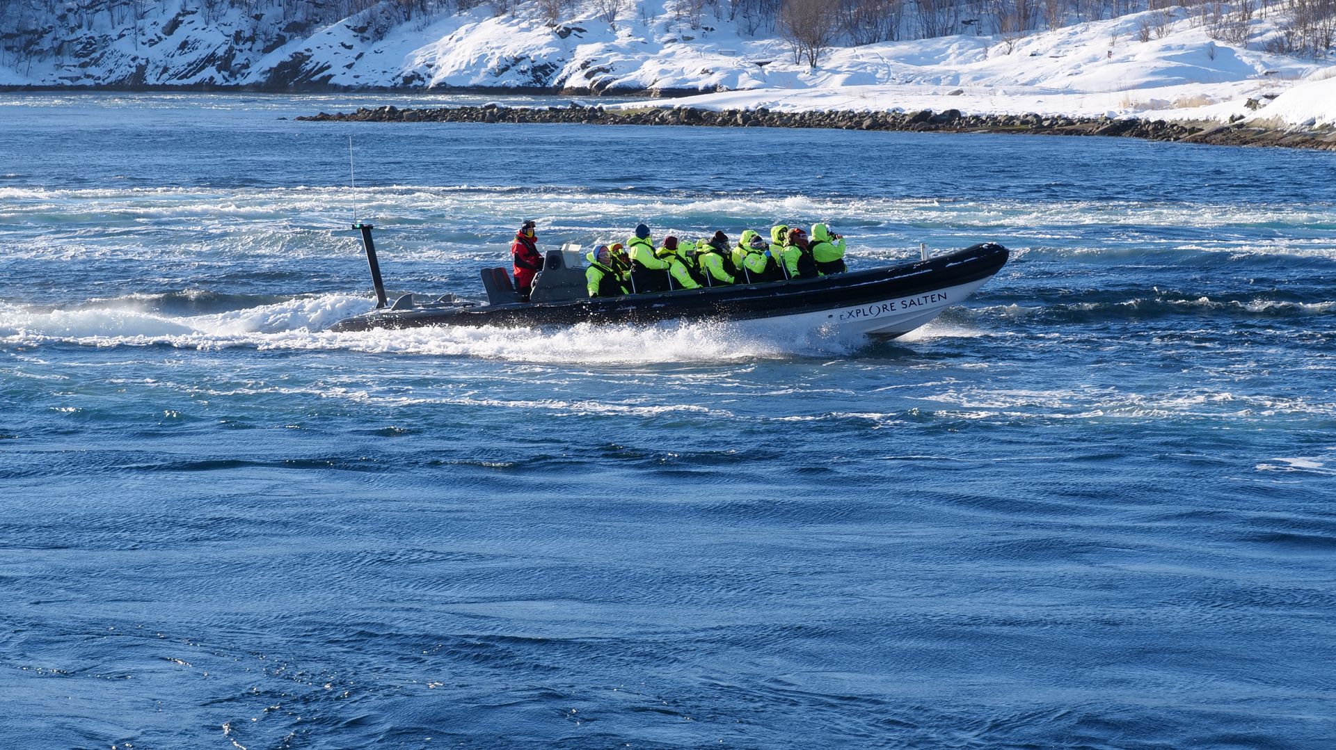 Erklärung und visuelle Begleitung über die Monitore im Bus. Dann ca. 30 min. fahrt zum Saltstraumen.