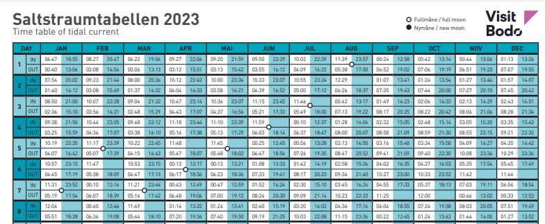 Die Gezeiten von der Website Bodö stimmen, die haben wir auch herangezogen. Wir sind so ca. 1 Stunde vor den jeweiligen Zeiten dort gewesen und konnten dann super beobachten, wie der Strom immer stärker wurde, vgl. auch meinen Beitrag #106.