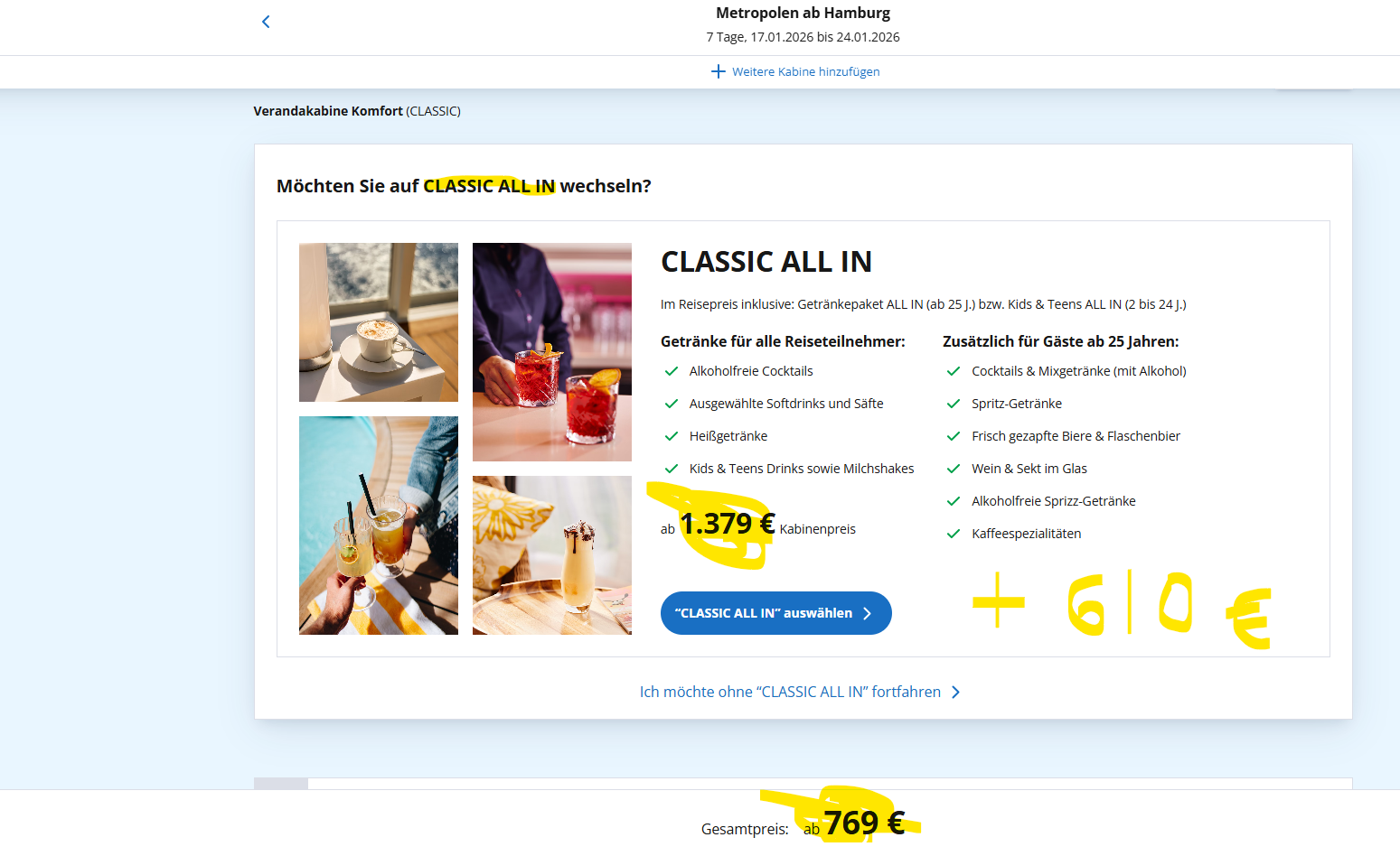 Auf der Nova gab es heute vor einer Woche auf Nachfrage noch inkludierten Rotwein im French Kiss.