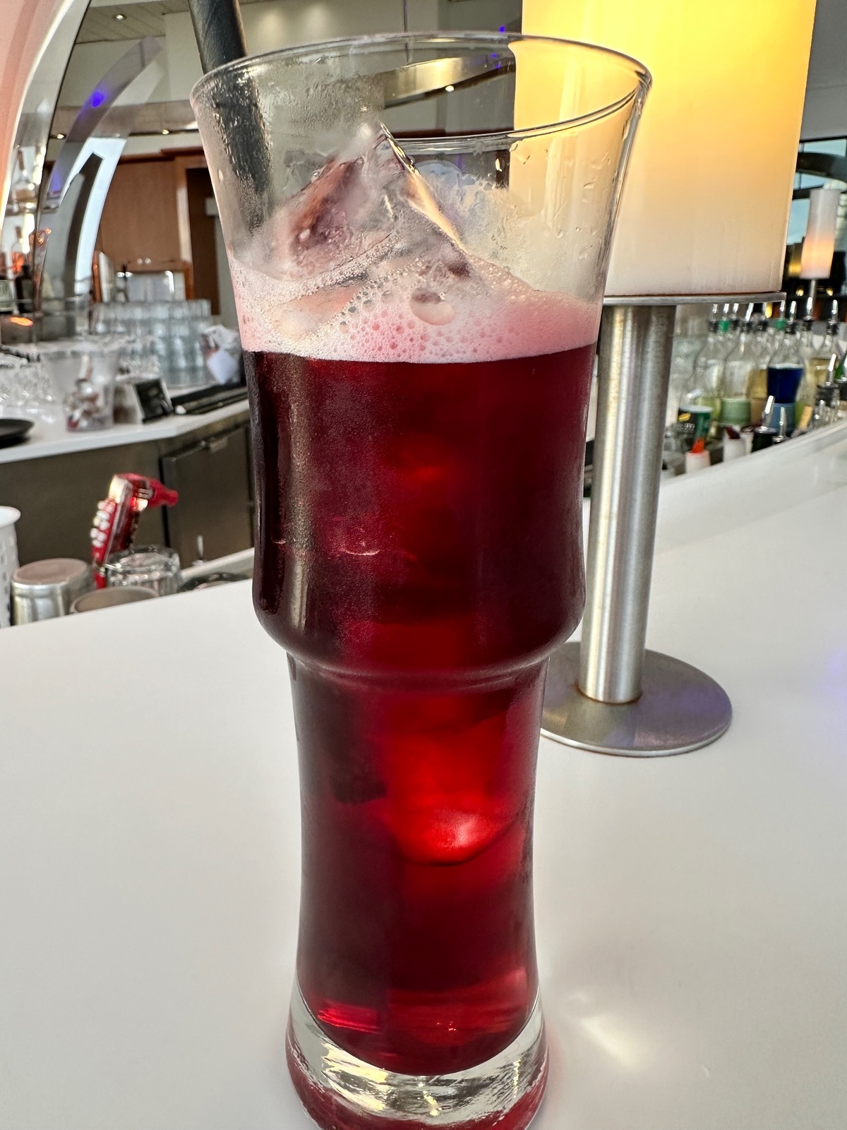 Ich sehe schon wieder dicke Eiswürfel, die sich von unten bis oben im ganzen Glas stapeln. Wie im Januar beim AIDA-Cocktail auch. Bei 30 Grad in der Karibik war der im Nu verwässert. Na ja, jetzt hat sich das Problem eh erledigt, denn der AIDA-Cocktail ist auch Geschichte. Schade.