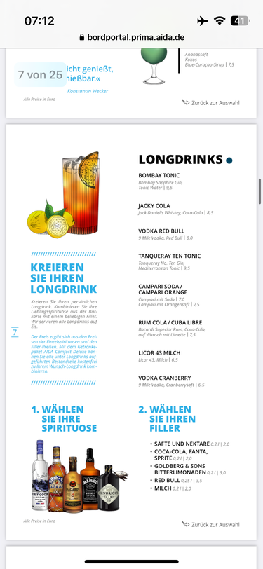Seit dem Wegfall von meinem geliebten Erdbeer Daquiri und dann den Frozzis, dem Caipiberry usw, habe ich schon bei den letzten Fahrten wenn überhaupt noch nur Aperol getrunken.