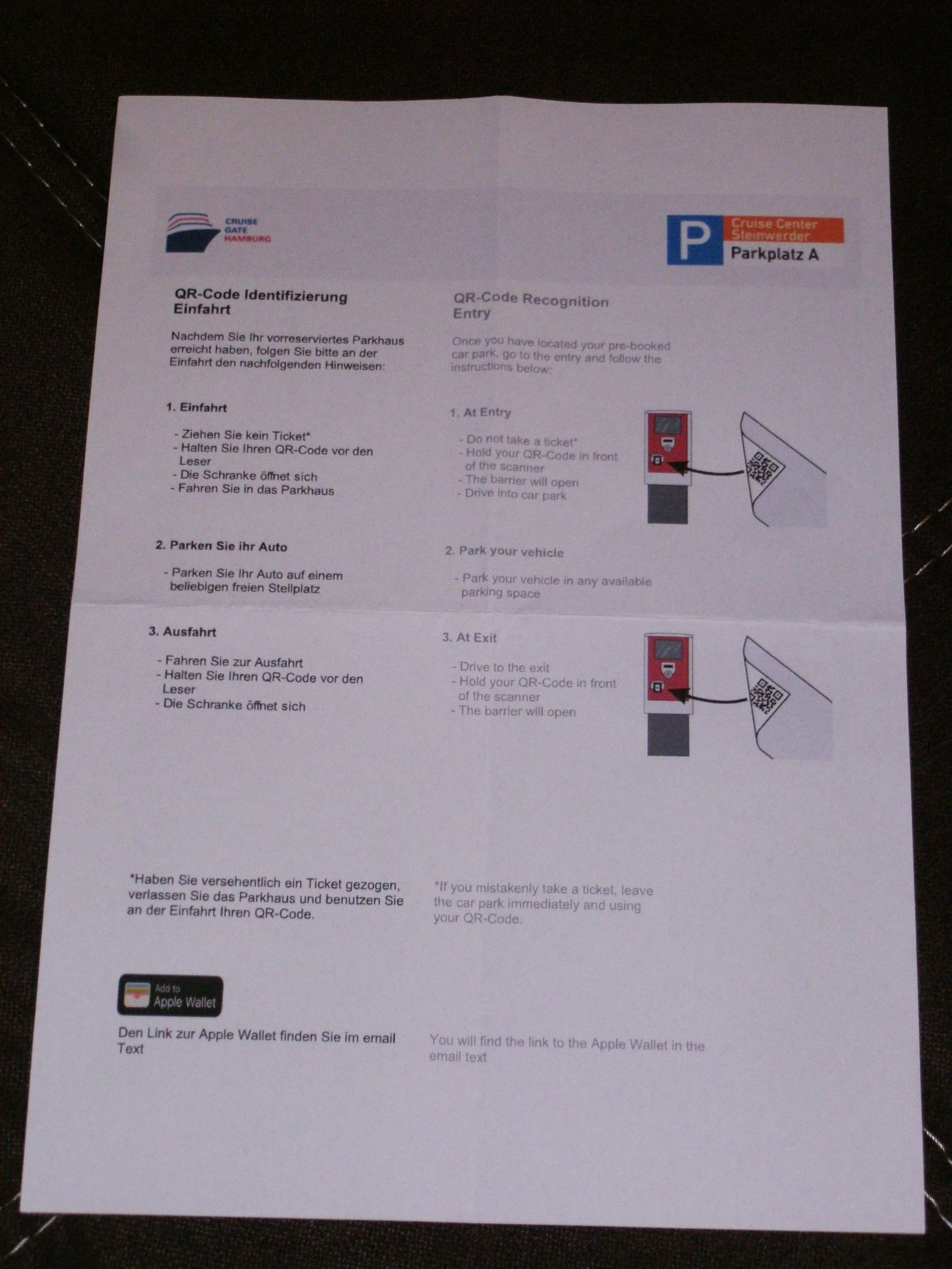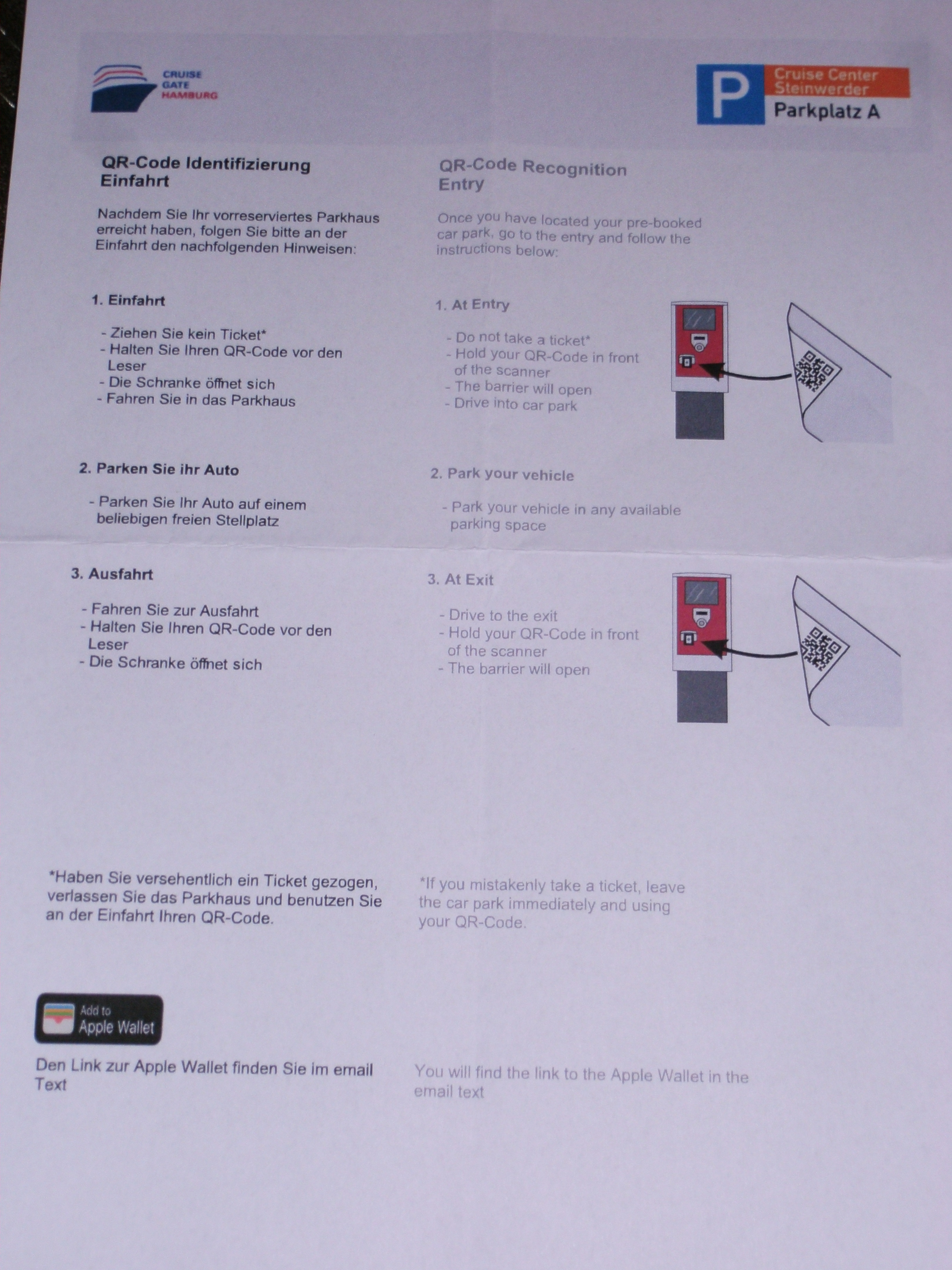 wir haben schon öfter in Steinwerder geparkt. Gebucht übe Aida. Bei der Einfahrt wird das Parkticket gezogen. Im Laufe der Reise bekommt ihr an der Rezeption ein zusätzliches Ausfahrticket. Alles ganz einfach.