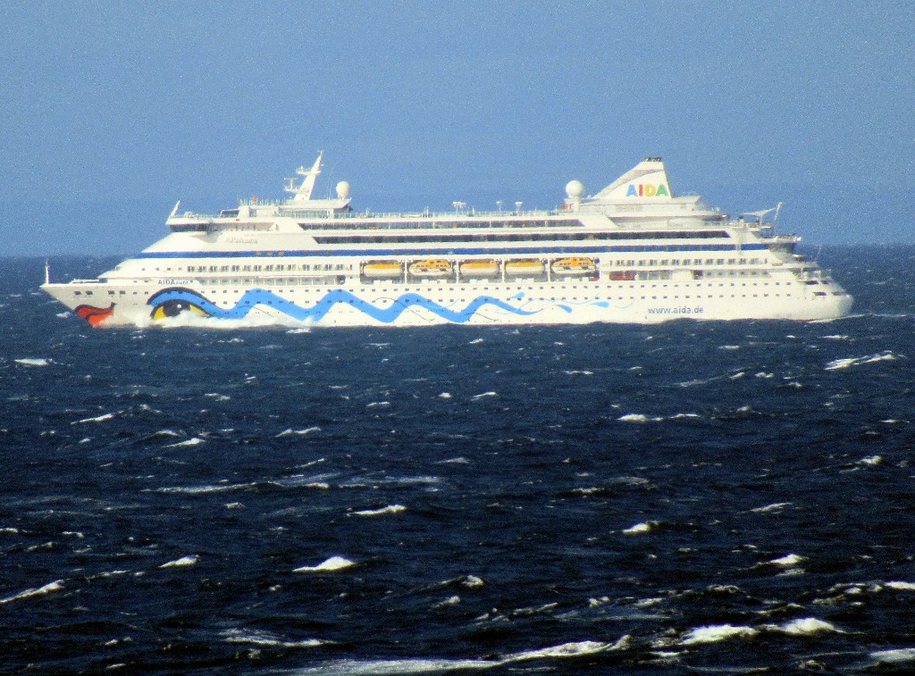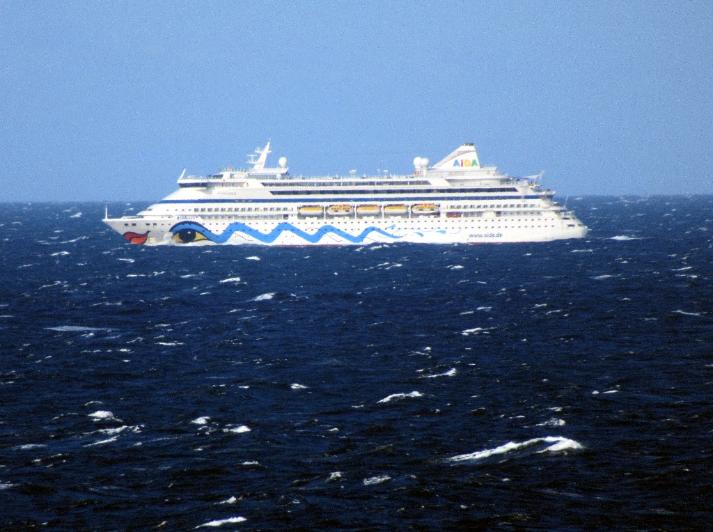 Die AIDAaura stampft durch die stürmische See