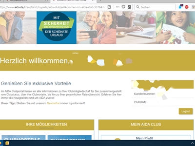 ja, du hast recht, so geht es. Erst regulär in MyAIDA einloggen und dann z.B. in einem zweiten Fenster den Clubzugang aufrufen. ![]()