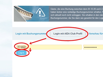 2. Login mit AIDA Club-Profil (Club-Nr. und PIN)