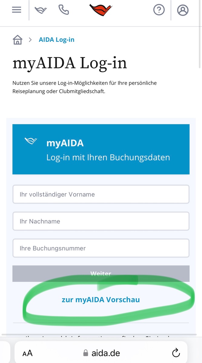 Mein Reisebüro hat es bei AIDA geklärt und schon funktioniert es…