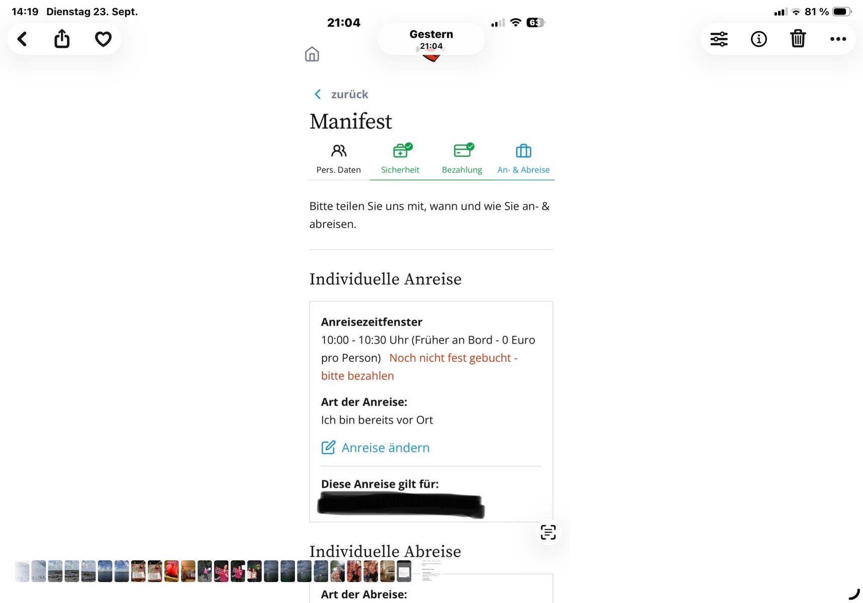In der App (Tablet quer) auf meine Reise klicken (oben rechts) und dann kommst du an die Stelle wie in der PC Ansicht
