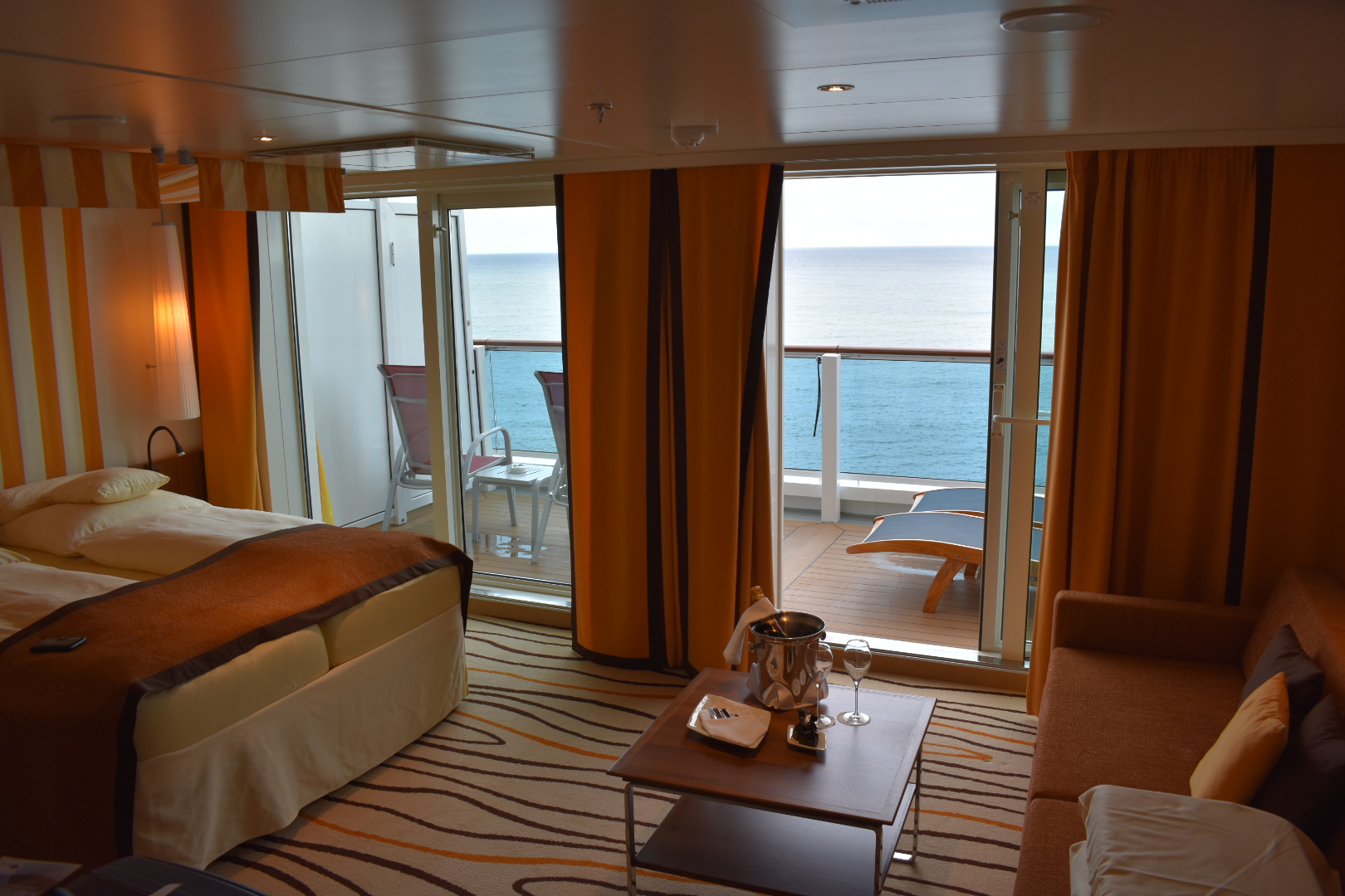 Wir hatten Glück mit dem Wetter, nach Regen beim Auslaufen in Hamburg danach ab dem ersten Seetag Sonne. Diese konnten wir auf dem Balkon, dem Patiodeck sowie auf den Ausflügen genießen.
