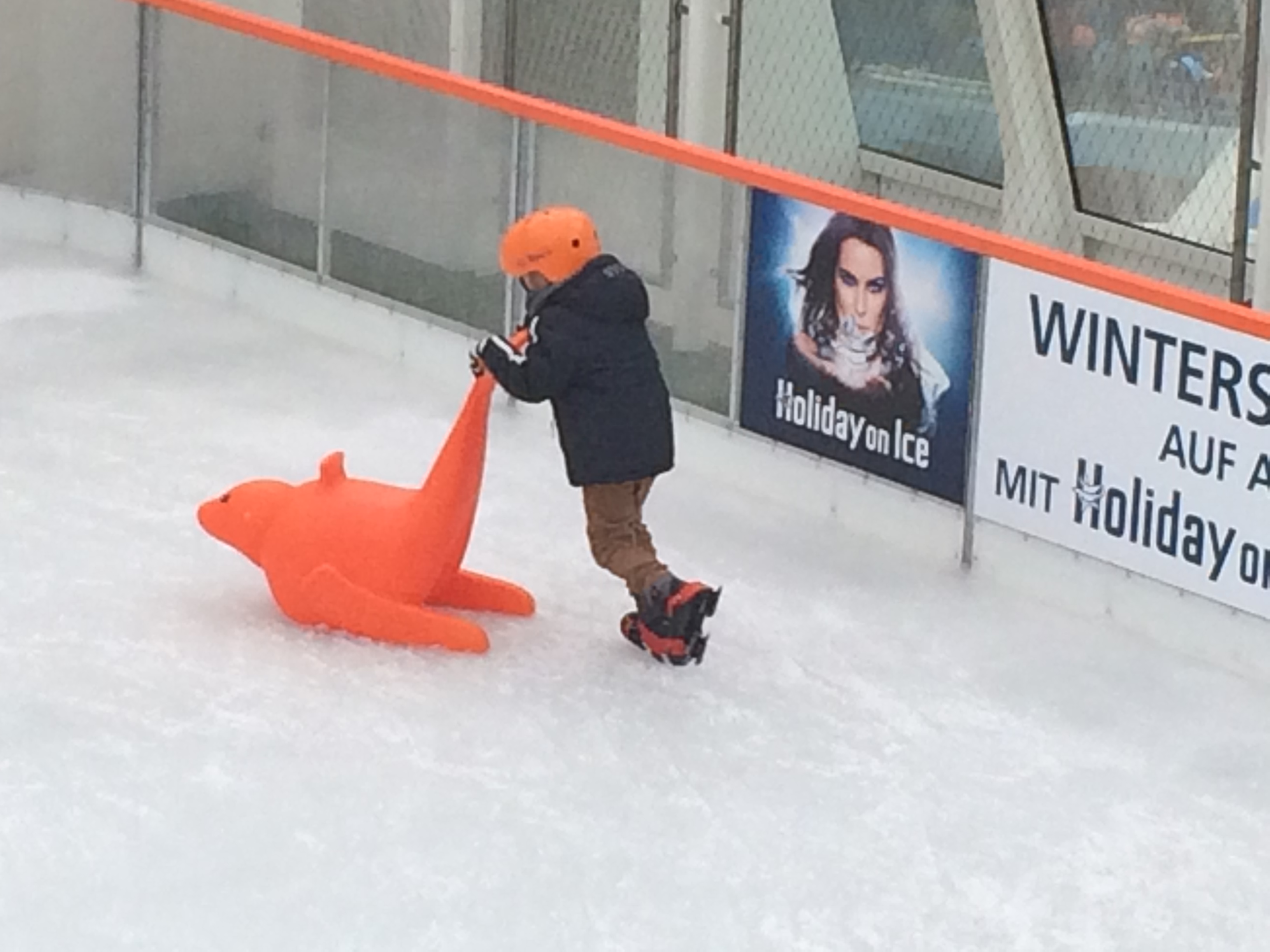 Unser Sohn, ebenfalls 3 Jahre alt, war sehr begeistert von der Eisbahn im November. Allerdings gibt es dort ja auch solche Gleitschuhe, damit klappt es dann etwas besser als direkt mit den Schlittschuhen. Zudem sind die Robben echt super und ich habe mit ihm einige Runden damit auf dem Eis gedreht! Er freut sich schon drauf wieder dort Schlittschuh fahren zu dürfen.