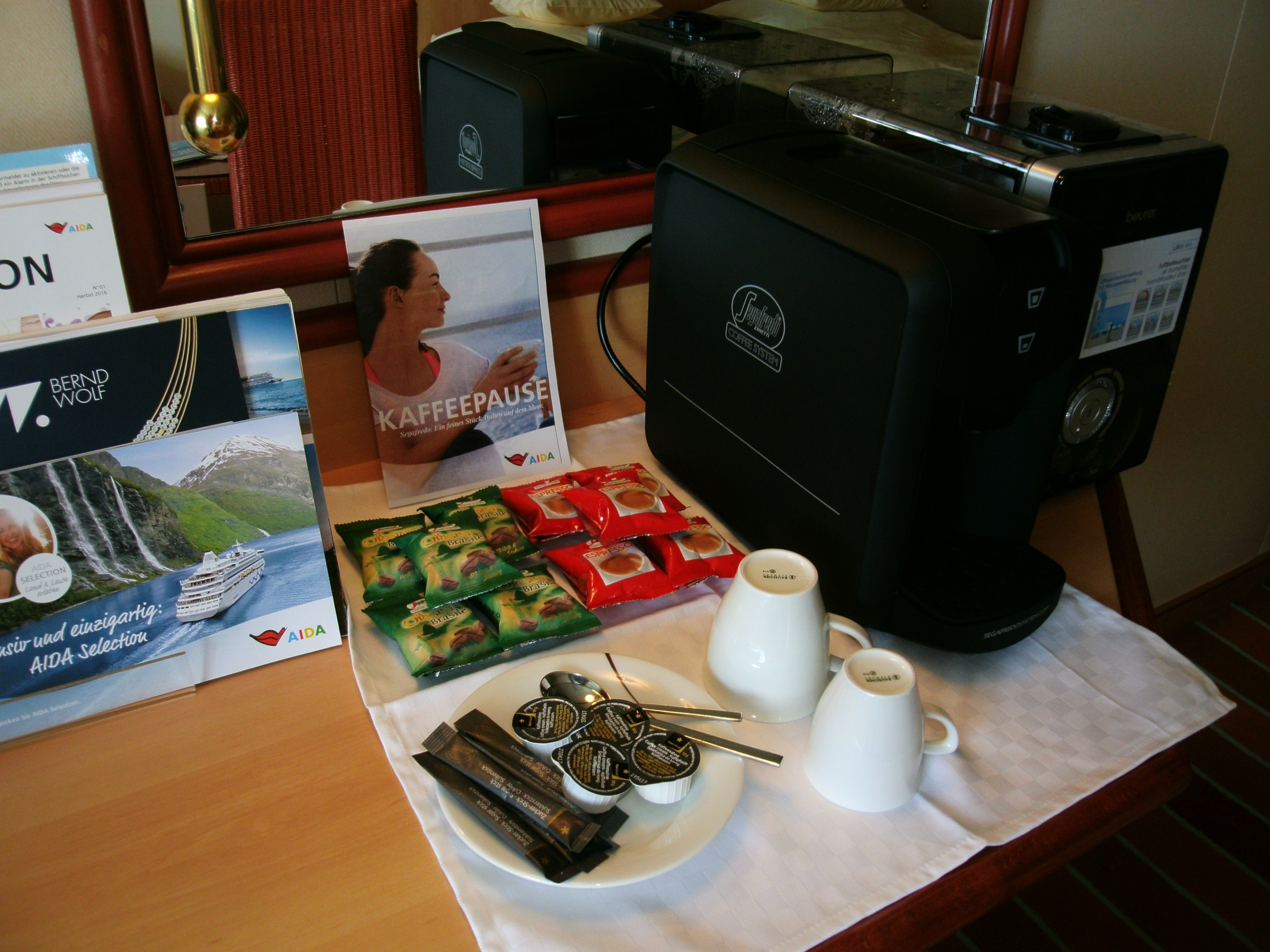 Im August letzten Jahres hatte ich auf AIDAluna erstmals eine Kaffeemaschine reserviert. Anfangs gehörte ich auch zu den Skeptikern und dachte: "Braucht man die wirklich?!" Ich stellte relativ schnell fest, dass ich sie nicht missen wollte. Morgens auf dem Balkon so einen Kaffee, das hat schon was.