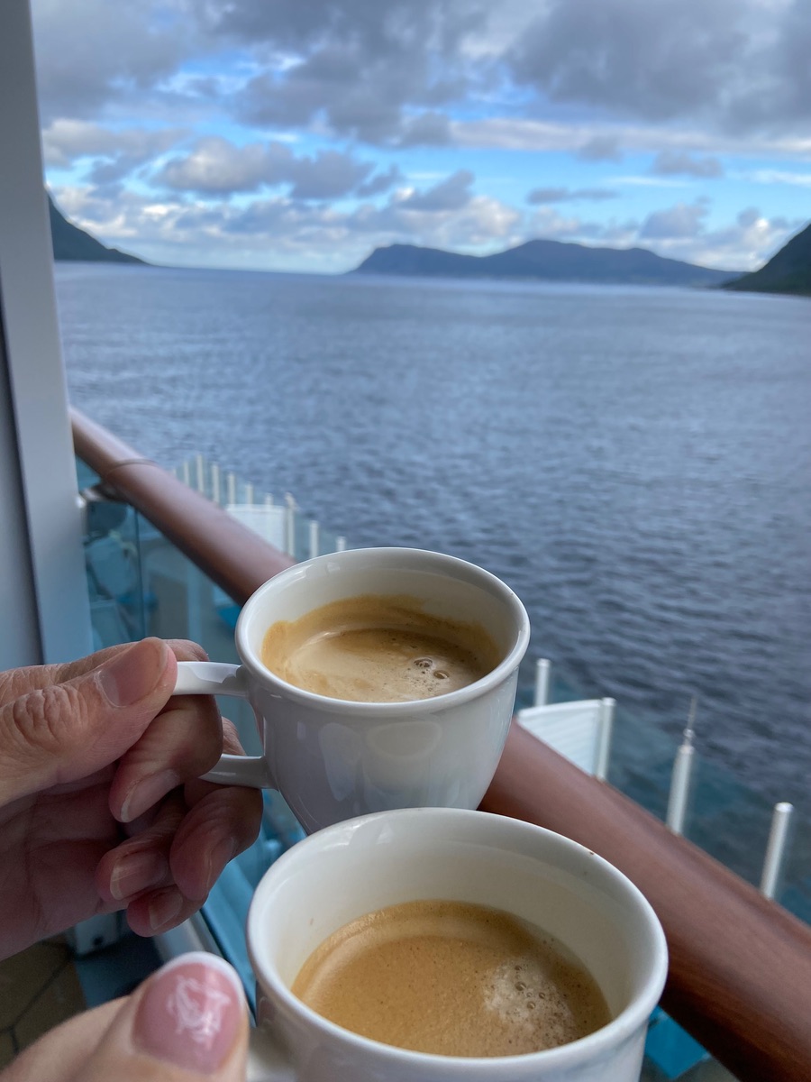 Da ich den Kaffee schwarz trinke, habe ich dem Kabinensteward Bescheid gegeben, dass ich keine Sahne benötige