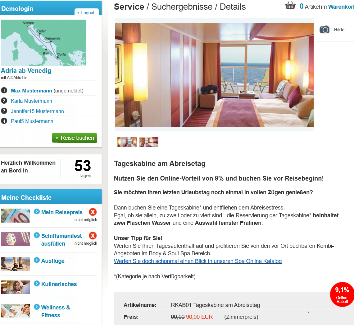 Aber bei Familie Mustermann ging für April und Venedig doch die Tageskabine normal zu buchen, also die, de nicht nur bis 13 Uhr geht...