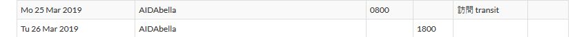 Nachtrag: wenn es sich um den Aufenthalt der AidaBella am 25./26. März 2019 handelt, da wird sie voraussichtlich am Kai Tak Cruise Terminal liegen ... sorry.