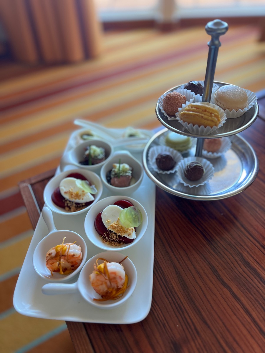 Wenn die Löffel Häppchen bleiben dann ist der Preis ok, für die trockenen Pumpernickel Salami, Schinken Happen, bestellen wir es nicht mehr. (Von Schiff zu Schiff verschieden. )
