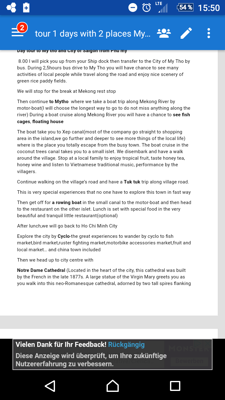 Die Tour wäre geteilt in eine Mekong Fahrt und die Fahrt nach Ho-chi-minh-stadt.