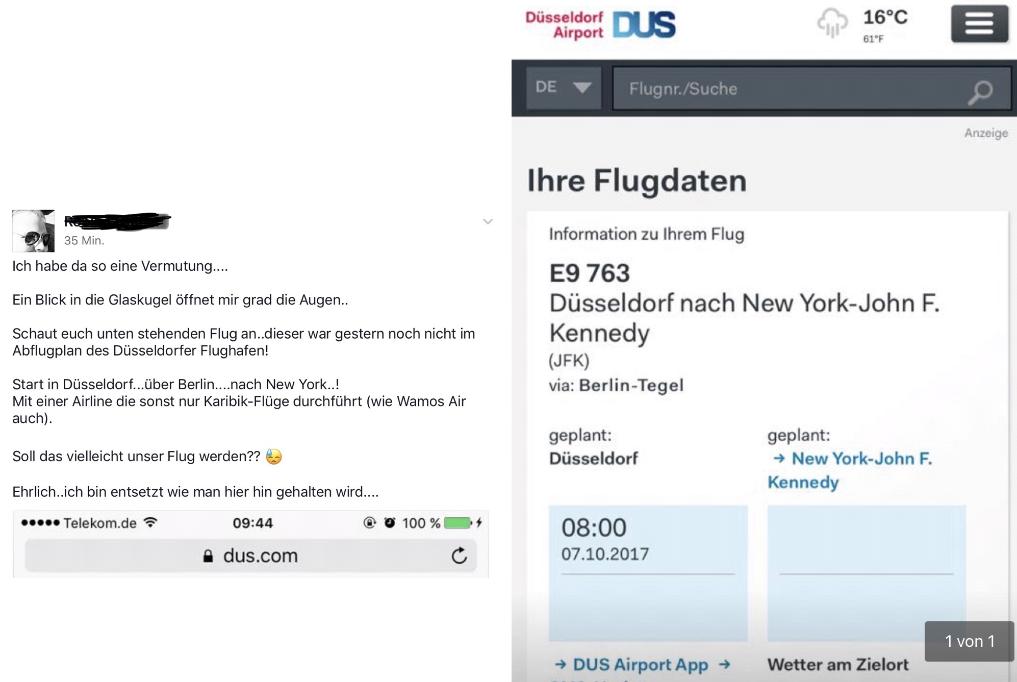 ...schau mal auf Facebook, da ist etwas zum Flug von Düsseldorf nach New York gepostet!