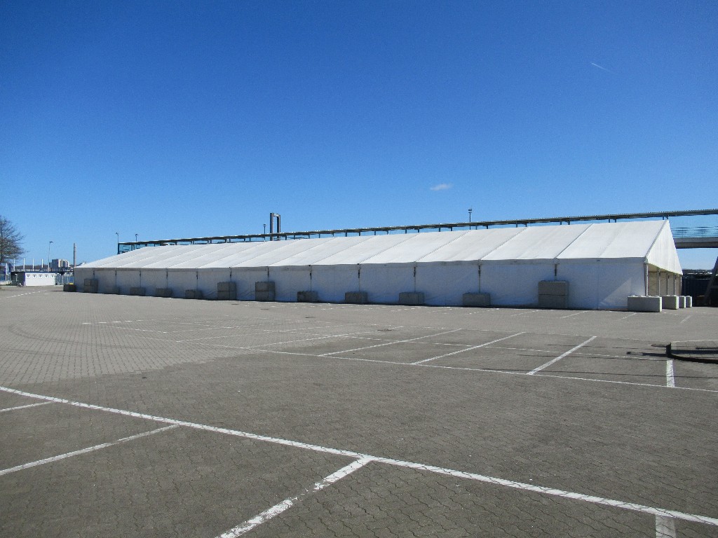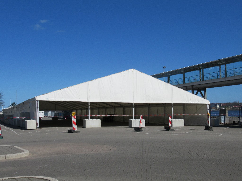 das große Zelt ist für die anreisenden Passagiere am Liegeplatz 28 auch schon aufgebaut