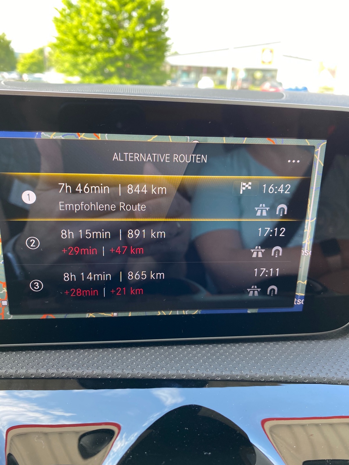 Das waren unsere Optionen lt. Auto-Navi (auf dem aktuellsten Stand):