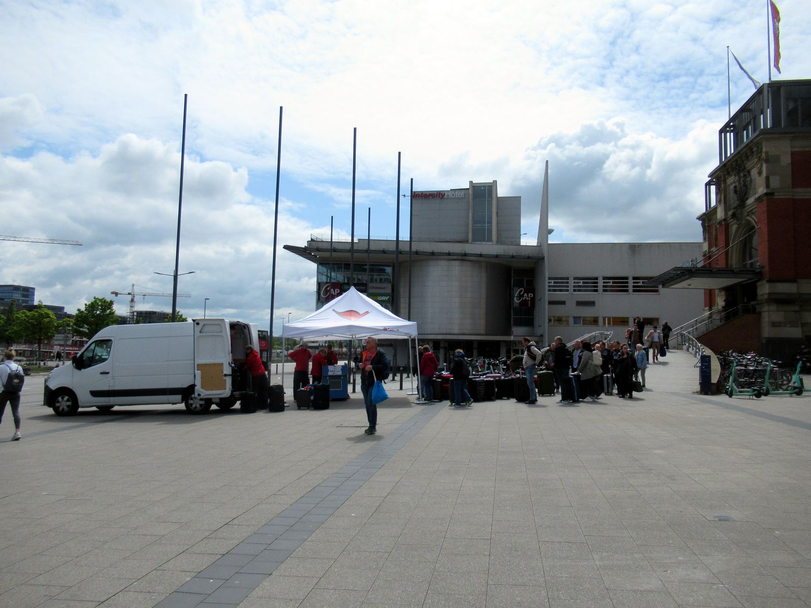 Blick auf die Kofferabgabestelle vor dem rechten Ausgang (Kaistraße) vom Hauptbahnhof