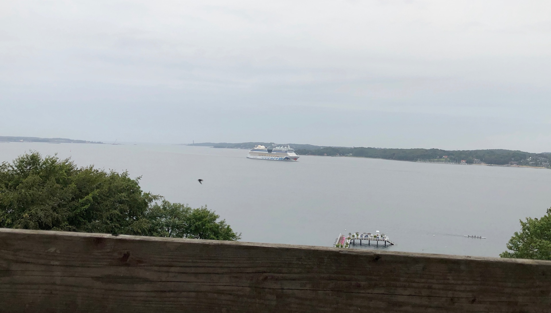 Wenn wir mit dem Auto anreisen, wählen wir sehr gern das Maritim Hotel Bellevue für die Vorübernachtung. Die Zimmer mit Fördeblick (aufpreispflichtig) sind die perfekte Urlaubseinstimmung. Wenn man rechtzeitig wach ist, kann man morgens auch "sein" Schiff einlaufen sehen. Parken ist unproblematisch möglich, das Frühstück wirklich gut und neben dem Terrassenrestaurant gibt es direkt unterhalb des Hotels die (mit dem Hotel nichts zu tun habende) Cocktailbar auf einem Steg. Zu Fuß in die Stadt ist es etwas weit - man kann aber entspannt an der Kiellinie schlendern.