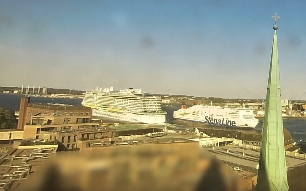 Es gab übrigens eine ziemlich gefährliche Situation heute beim Ablegen der AIDAnova in Kiel. Während die Nova ablegte, kam von hinten die Stena Scandinavica wo sie wie gewohnt drehen wollte. Im letzten Moment hat Stena noch von rund 5 Kn auf 2 Kn runtergebremst. Das dürfte auf garkeinen Fall so abgesprochen gewesen sein, so dichte Manöver sind in Kiel nicht erlaubt.