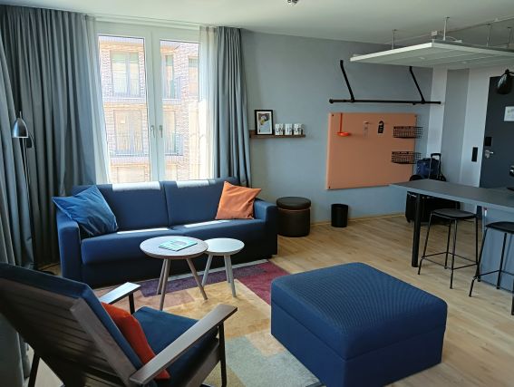 Einzig vom Frühstück (separat zu buchen) hatte ich im Vorfeld gelesen, dass es wohl etwas spartanisch sei. Deshalb habe ich mir bei einem der Bäcker im Hauptbahnhof morgens etwas geholt und mir Kaffee dazu gemacht. Hat vollkommen gereicht. Dabei konnte ich den herrlichen Ausblick über die Förde und zur Hörnbrücke genießen und ganz in Ruhe frühstücken. Ein toller, entspannter Start in den Tag.