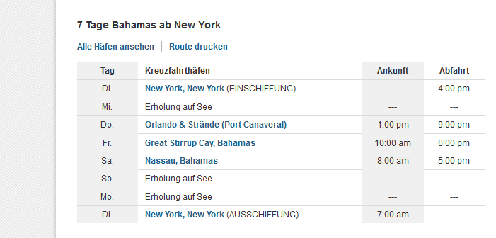 In Orlando bleibt einem bei den Liegezeiten nichts als relaxen übrig, in Great Stirrup Cay gibts eh nur Strand,Pool und relaxen und Nassau...naja.
