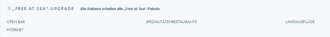 als zweites Paket kann man z.B. Spezialitätenrestaurants ( z.B. 3 Essen ) Oder Ausflugsguthaben für NCL-Ausflüge je Hafen von 50 Dollar glaub oder EUR da bin ich grad nicht sicher, auch nicht ob es pro Person oder Kabine gewährt wird.