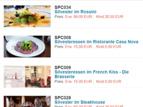 (wir fahren nicht) In Demo Mustermann ist nur das Silvestermenu mit Preis zu sehen