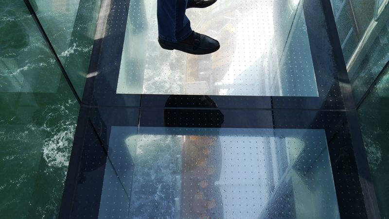Wir haben keine Probleme über den 'Skywalk' zu laufen, nur ist der Durchblick leider etwas trübe