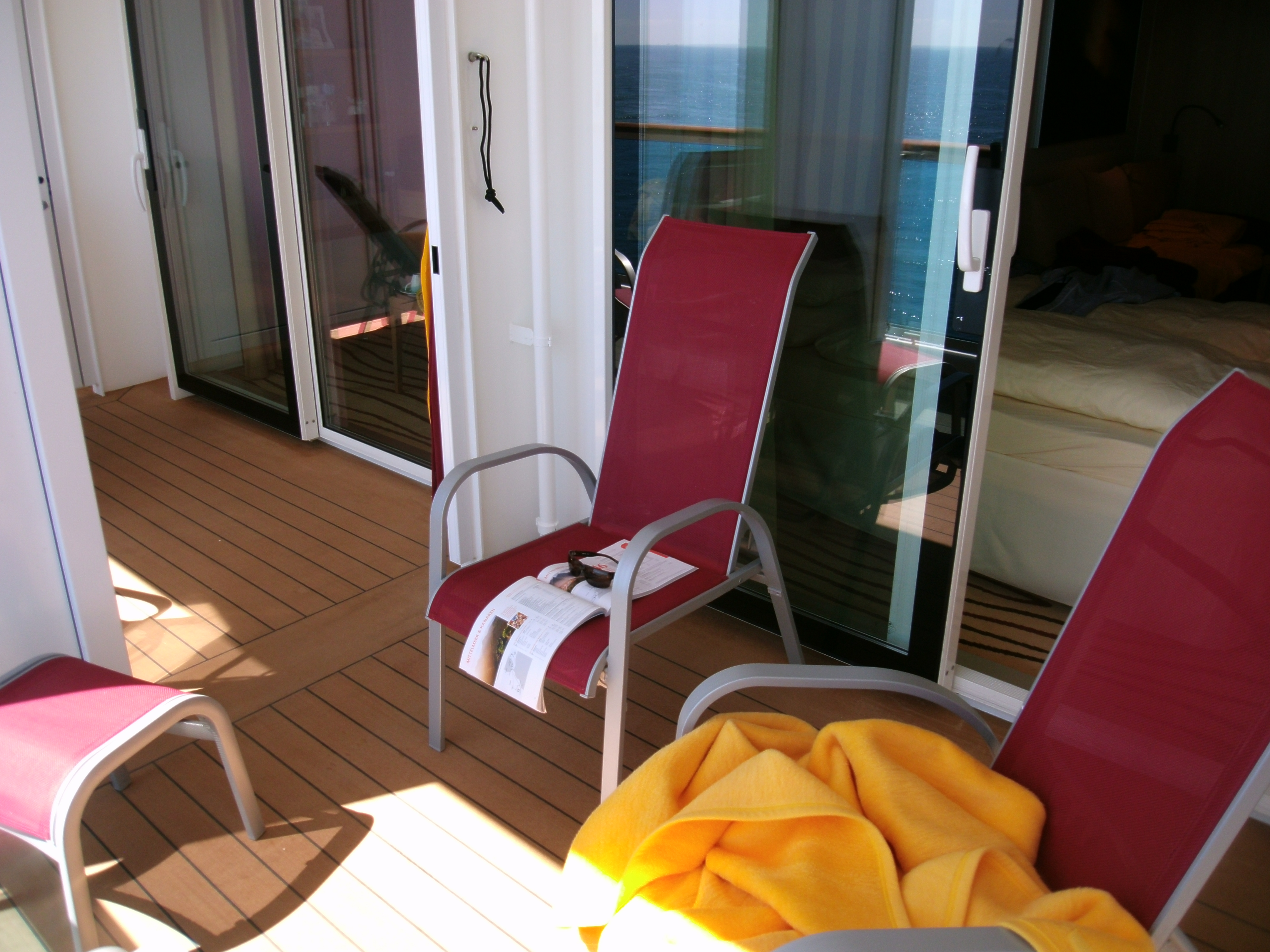 Wenn man Glück hat schließt das Personal auch die Wand zwischen den Balkonen auf, dann hat man einen größeren Balkon