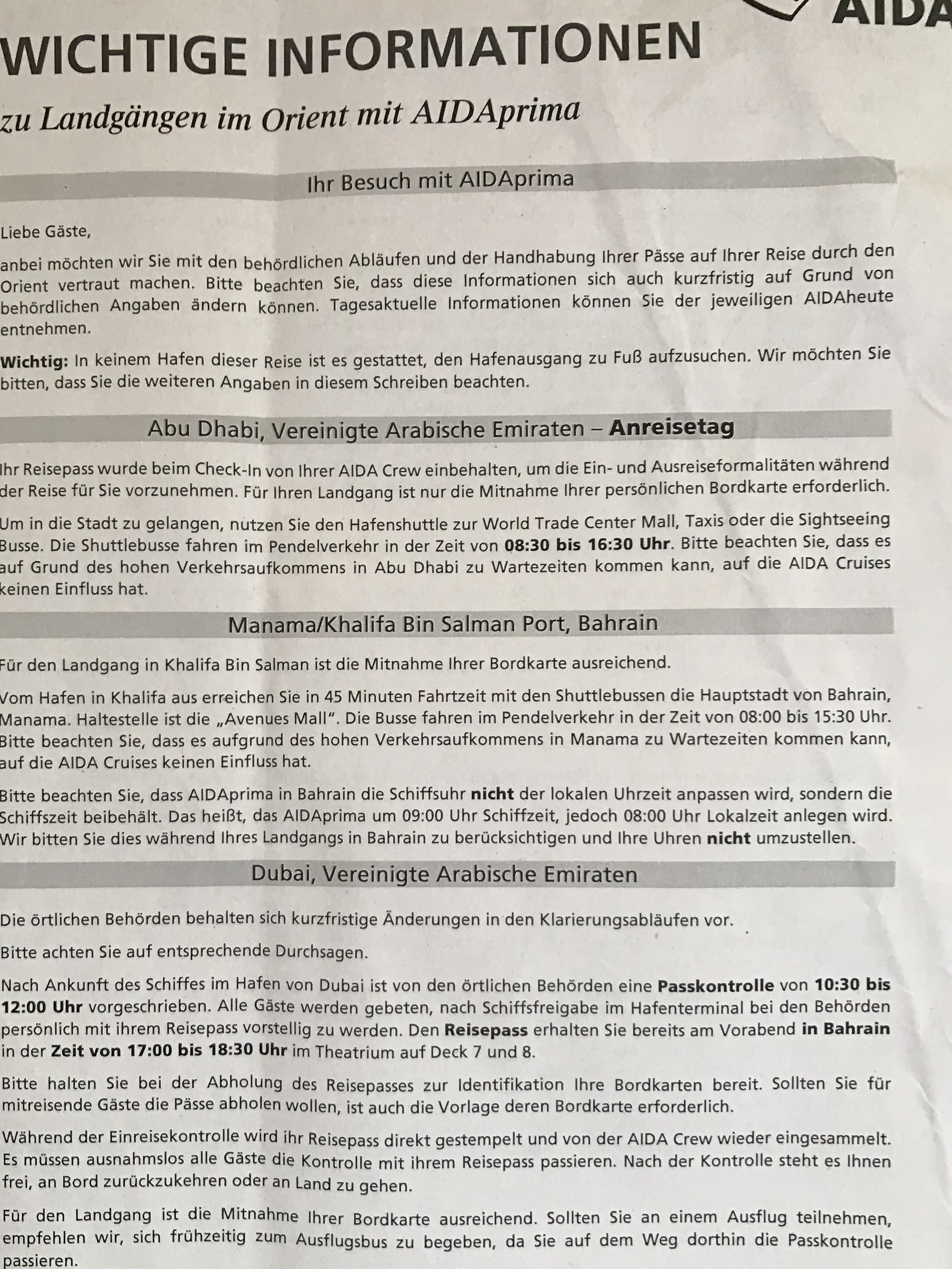 Für alle, die die Orient Tour mit der Prima noch vor sich haben, hier die momentan aktuellen Infos zu Landgängen / Einreise / Passkontrollen - hilft evtl. dem ein oder anderen ein bißchen bei der Ausflugsplanung