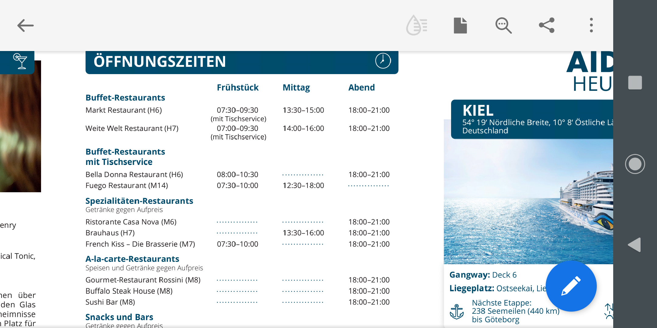 Vielen Dank. Ich bin gespannt, ob es in Kürze auch wieder Selbstbedienung zum Frühstück gibt - laut AIDA heute ja leider nicht.