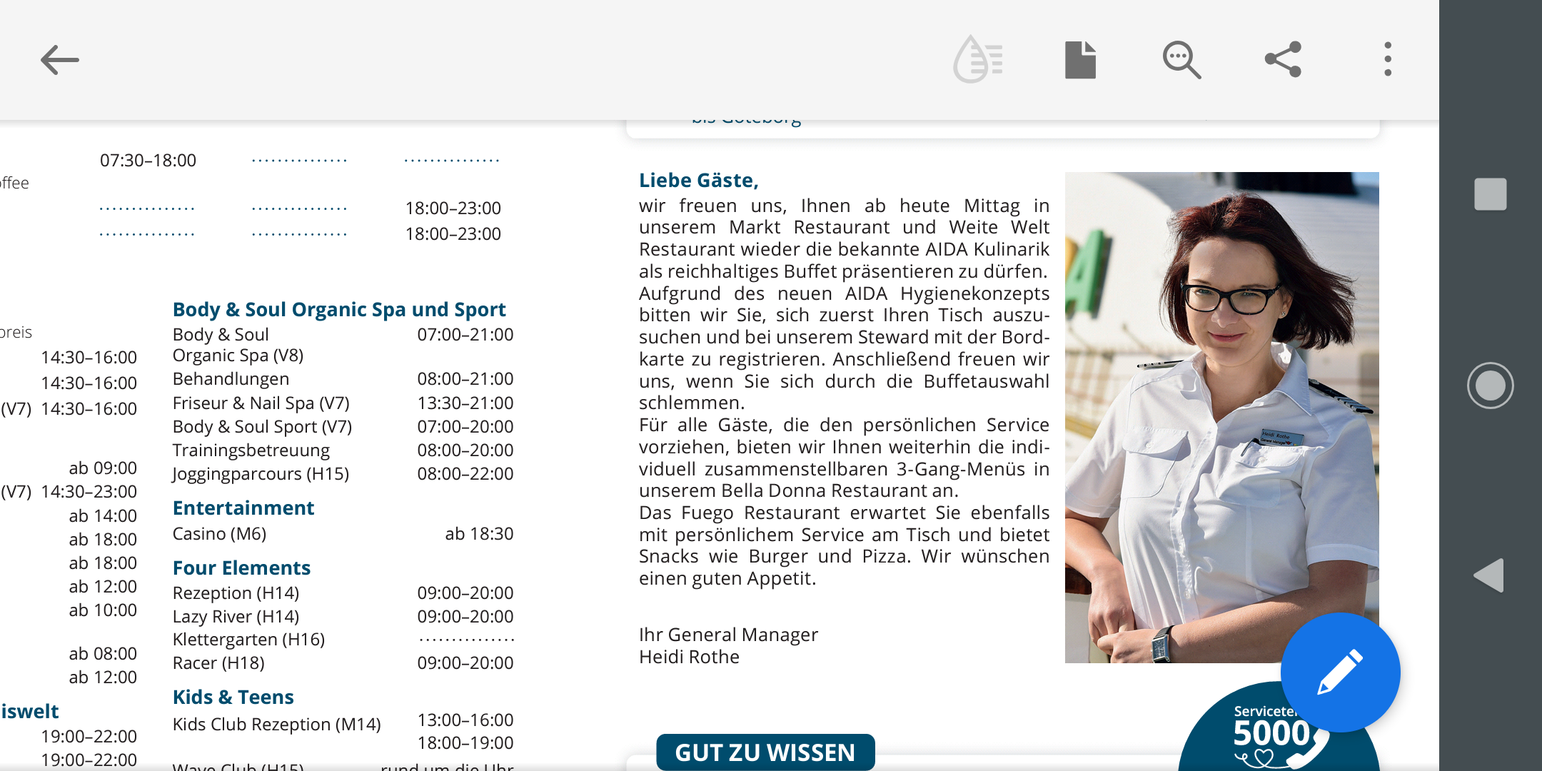 Vielen Dank. Ich bin gespannt, ob es in Kürze auch wieder Selbstbedienung zum Frühstück gibt - laut AIDA heute ja leider nicht.