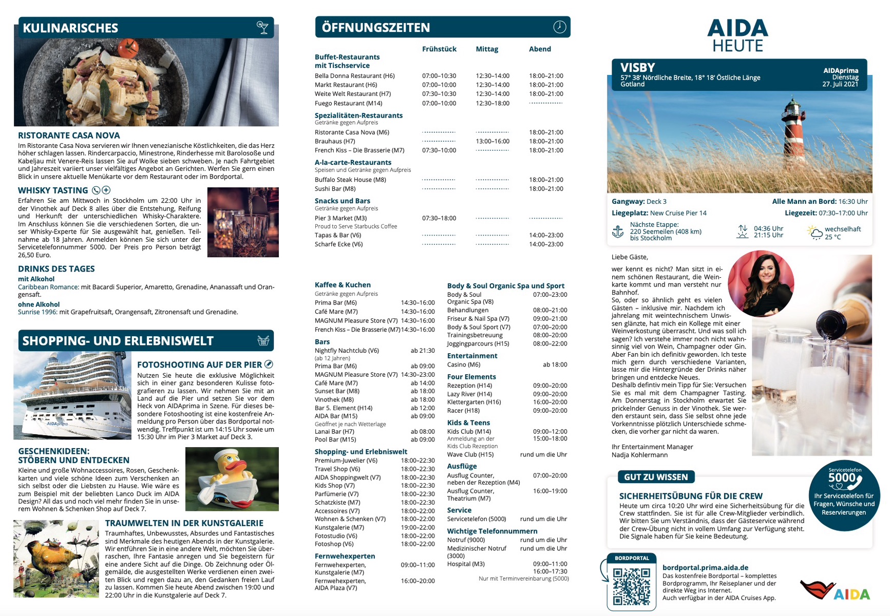 Bei unserer Fahrt auch. Ich lade sie mir nur zusätzlich immer für zu Hause aus dem Bordportal runter. Auf dem Schiff selbst ist die Papierform viel schöner - am Vorabend bei Schummerlicht lesen und sie am eigentlichen Tag spät Abends völlig zerknittert vom Gebrauchen auf den Schreibtisch legen. Gehört für uns zum Erlebnis dazu und ist nicht durch das seelenlose Tablet zu ersetzen. :loveyou: