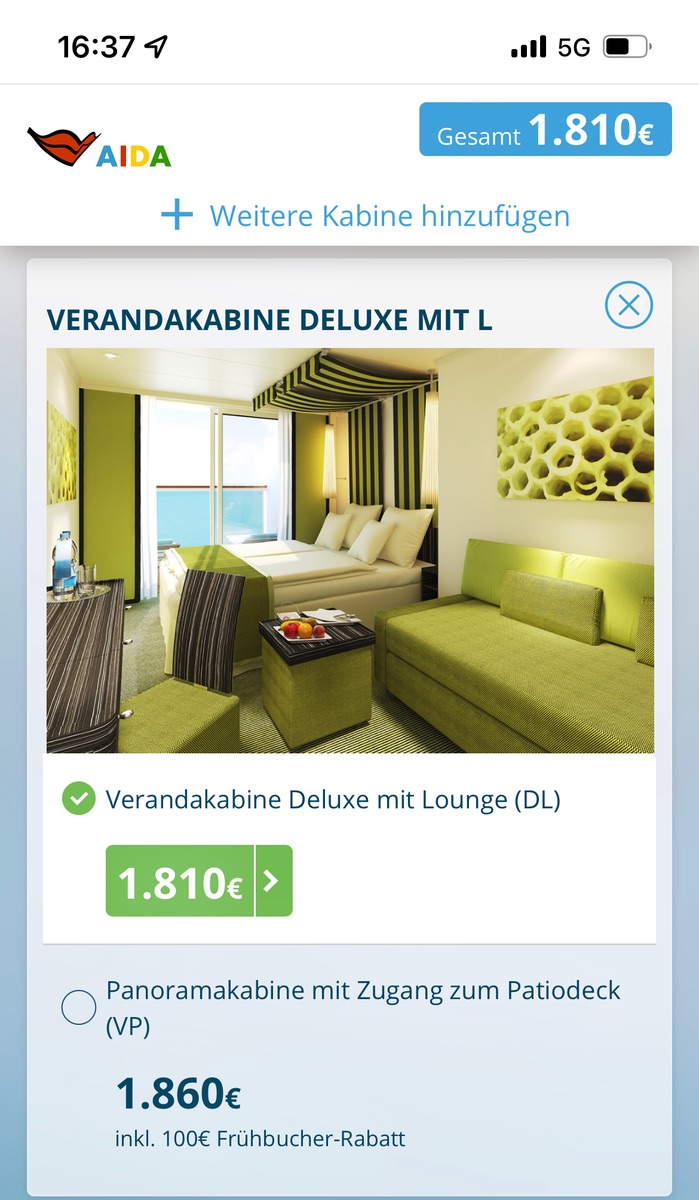 wollte ja vor kurzem von Veranda Komfort Premium auf Junior Suite Vario umbuchen