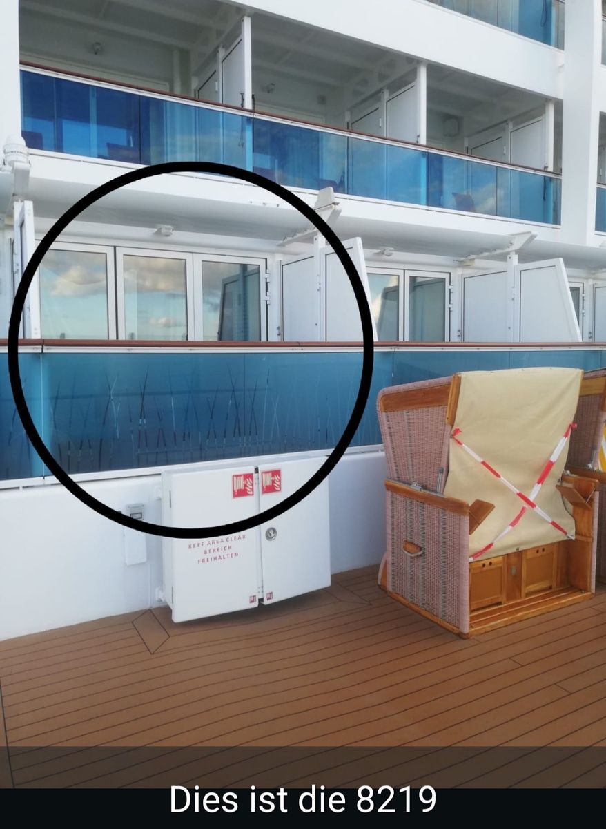 Eifelexplorer Das Bild etwas weiter oben von novoman11 für die Kabine 8219 ist der Ausblick bei allen Veranda Deluxe mit Logia die nicht über der Treppe sind (8203 bis 8220). Daher werden sie gerne als "Spannerkabinen" bezeichnet (nebenbei auf der Mein Schiff Relax geht es aber noch schlimmer). Ich füge noch ein Bild dazu. Ab der roten Markierung nach rechts geht die Kabine 8222 los. Links davon sind die jetzt Junior Suiten in der gleichen Bauweise. Wegen dieser möglichen "Spannergeschichte", die dort nicht geht, wurden diese Kabinen teurer und sind jetzt keine Veranda Deluxe mit Logia mehr.