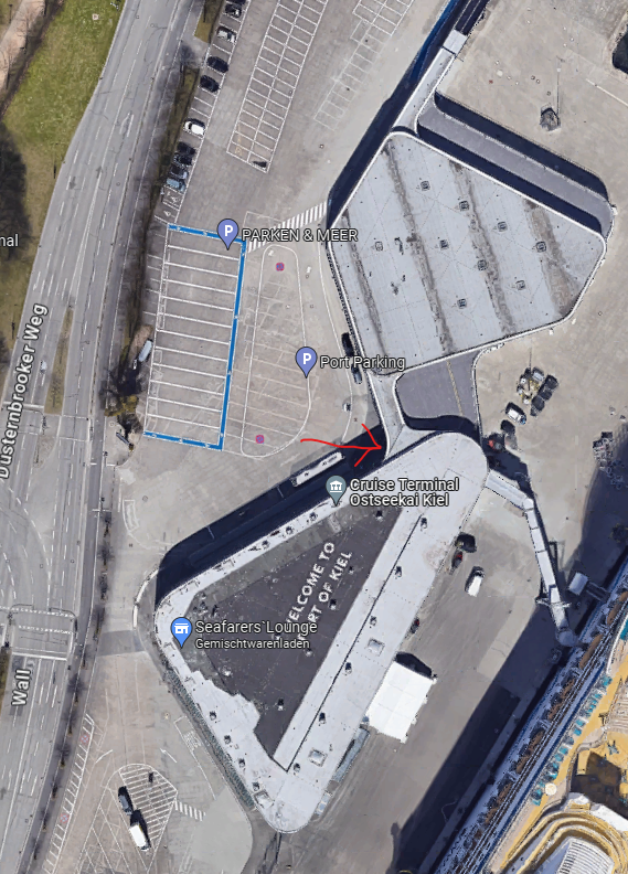 Hallo, wo ist die Koffer Abgabe am Terminal 28 am Ostseekai in Kiel?