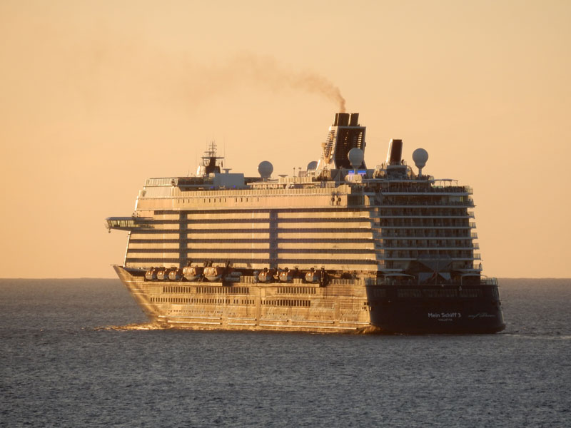 ich war am 27.02. (Barbados) auf der MSC und habe der MeinSchiff3 beim Auslaufen zugeschaut. Natürlich sind dabei auch Fotos entstanden, die ich den TUI Reisenden nich vorenthalten möchte. Sind jetzt keine Weltmeisterfotos, aber mit der untergehenden Sonne fand ich es Klasse.