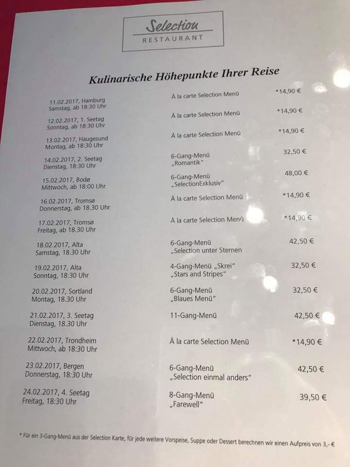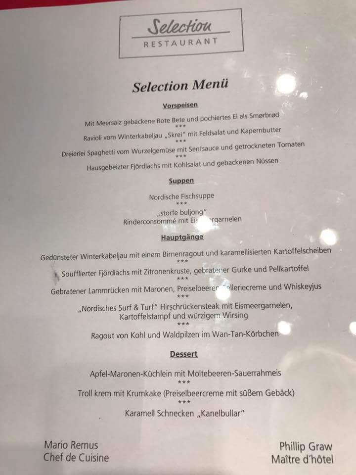 Zusätzlich wird dann vor der Reise noch ein 3x3 Packet angeboten (3x 3 Gänge im Selection Restaurant), kostet dann 39,90 €. Wirklich sehr günstig...