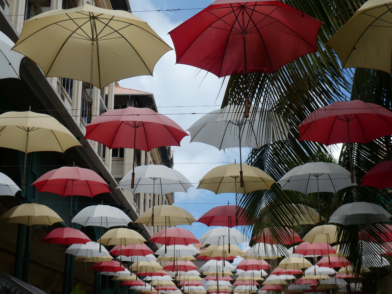 Nach dem Ausflug sind wir um ca. 09:00 Uhr an Bord gegangen und haben das Frühstück gemütlich genossen. Anschliessend sind wir in die Stadt haben den Weihnachtsbaum und die Regenschirme bestaunt und sind zurück zum Schiff. Man geht ca. 15 min. bis zu den Regenschirmen. Beim Schiff links da ist der Fussgänger Weg und Beschriftung in die City. Man kommt hier bei einem Aqua Park vorbei, da über die Brücke und dann immer gerade aus, beim Museum "Blaue Mauritius" vorbei und dann noch gerade aus und man sieht schon die Regenschirm Strasse.