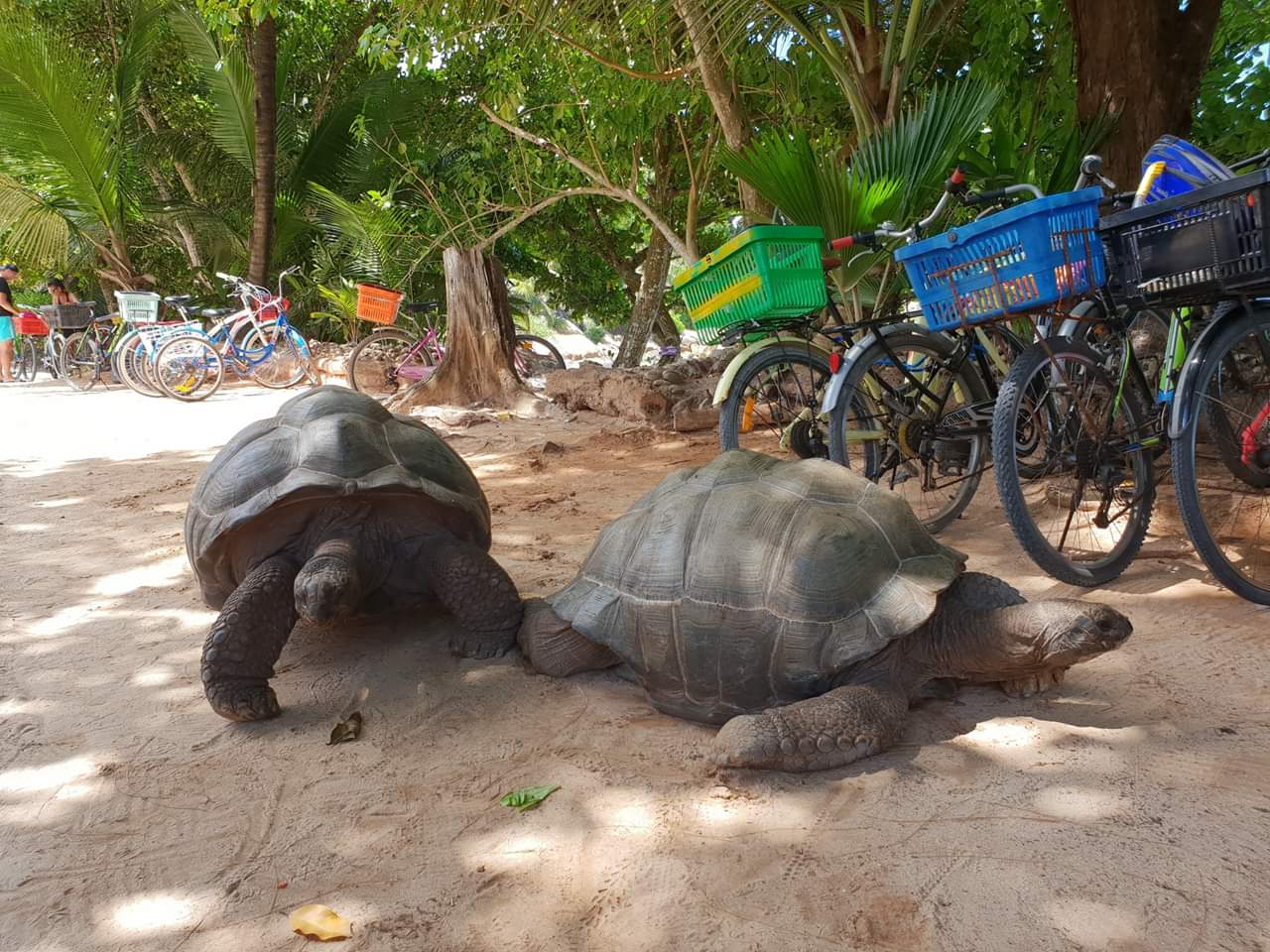 Wir haben freilaufende Schildkröten auf La Digue (beim Anse Servere), Sister Island (Privatinsel) und natürlich auf Curieuse (da gibt es ganz viele) gesehen. Auf Mahe gibt es glaube ich keine.