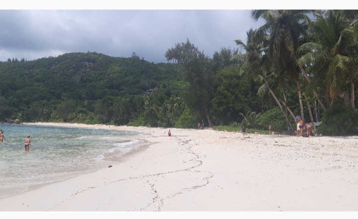 Die Überfahrt mit der Fähre nach Praslin (ca 1 Std) war wellenreich aber bei weiten nicht so schlimm wie ich nach zahlreichen Berichten hier gedacht hätte. (Für alle die schon mal in Mexiko von Cozumel nach Playa del Carmen gefahren sind, die Fahrten sind vergleichbar). Alle haben ihr Frühstück bei sich behalten nur eine Frau hat es nicht so gut vertragen!! Tipp ganz nach oben der Wind ist echt hilfreich, für empfindliche ganz nach vorne stellen und die beiden Inseln am Horizont fixieren, dass hat die Wellen fast ausgeblendet. Auf Praslin geht es sofort auf den Katamaran, kurze Begrüßung und Vorstellung des Tagesablaufes und los geht es. Der erste Stop ist ein Schnorchelspott (St. Pierre) (wer in der Karibik schnorcheln war ist an dieser Stelle etwas enttäuscht) weiter geht es zu einem Fotostop an einem der schönsten Strände der Welt lt Guide, bei uns war der Strand Nebensache da eine Delfinefamilie (2 große und 2 kleine) am Katamaran seine Kreise zogen