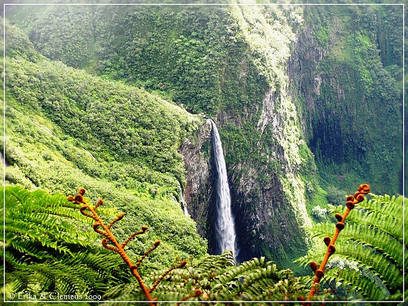 und hier der Trou de fer, belieber Platz bei Hubschrauber-Rundflügen. Wir hatten die Ssicht nur für ca. 20 Min, dann war der Nebel wieder da.