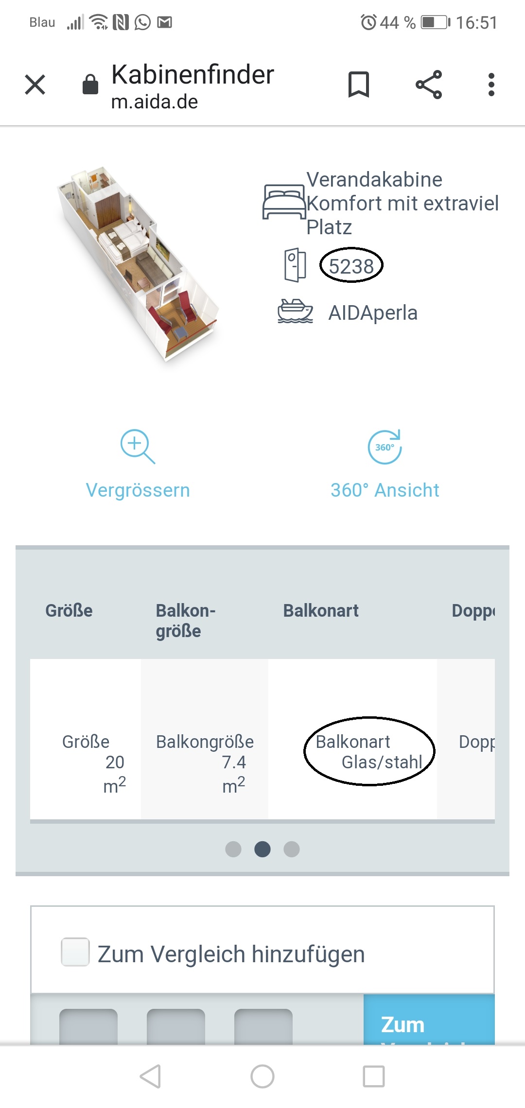 Auch wenn man sich die Zeichnungen der 3 verschiedenen "Verandakabinen Komfort" anschaut sieht man, dass sie alle 3 die gleiche Grundfläche haben. Schaut man sich dann noch in die Deckspläne an und vollzieht die oben genannte Rechnung nach, stellt man fest, wie groß die Kabine im Maximalfall ist. Sicher hat das AIDA mit dem "extraviel" Platz etwas zweideutig formuliert, aber wenn man sich mit der Materie beschäftigt, sollte man vorher herausfinden können, wie die Sache gemeint ist.
