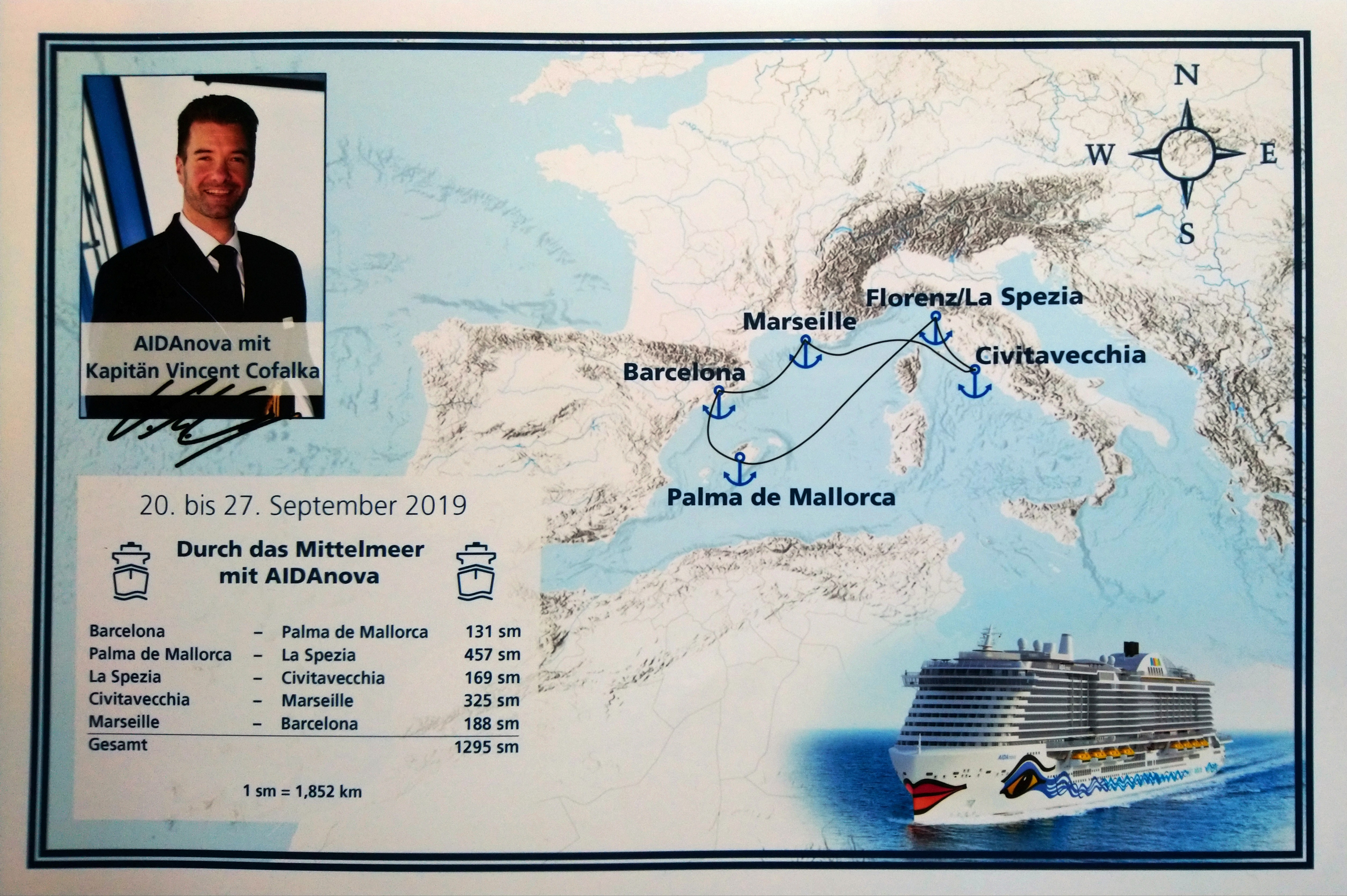 Kapitän war damals David Adrian.Wenn es die gleiche Route wie in den letzten Jahren ist - könnte ich dir mit dem Routenaufkleber und dem Stempel von 2018 (allerdings DIVA) aushelfen.
