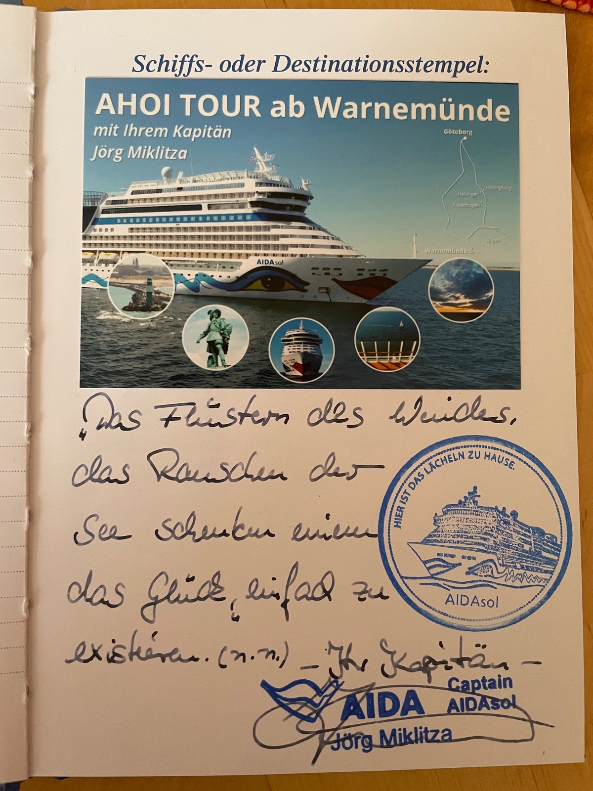 Da gab es auch die ganz normalen Routenkleber, Stempel und Originalunterschrift vom Kapitän sogar mit richtig tollen Sprüchen (Kapitän Miklitza).